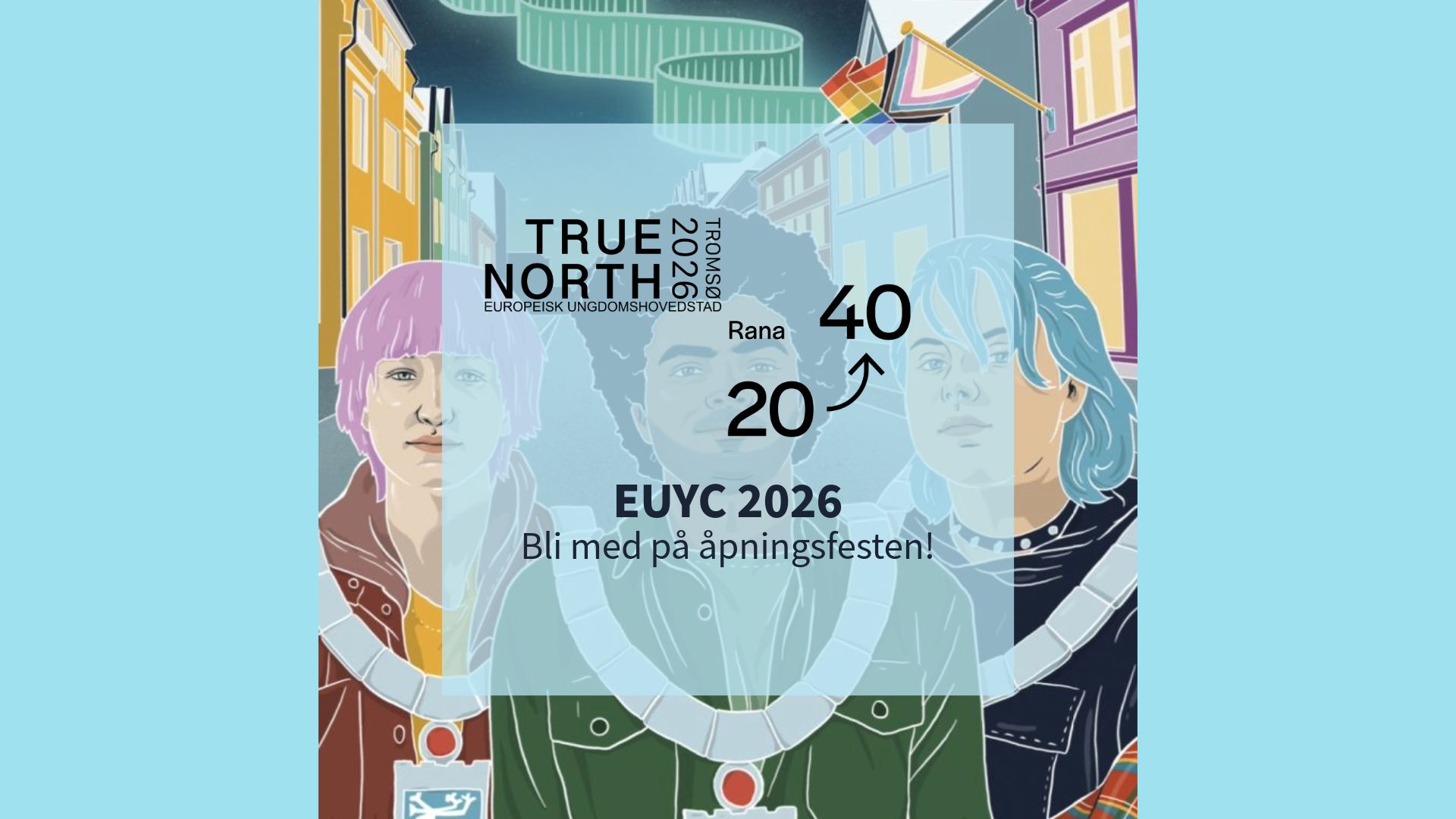 Nord-Norge er europeisk ungdomshovedstad i 2026! Åpningen markeres i Mo i Rana 21. februar, som én av 16 åpninger i hele landsdelen. Vi samarbeider med Nordland Teater og True North